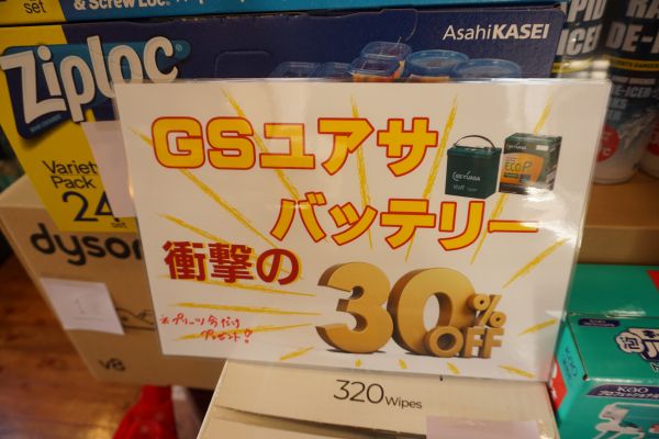 ジーエスユアサバッテリーが30%引き! これも超お買い得なので年末までにぜひご利用くださいませ!