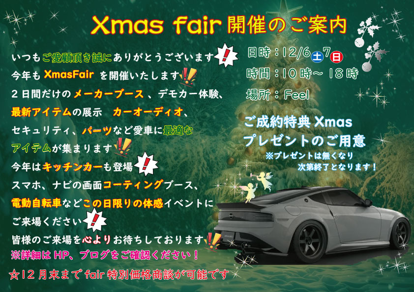 毎年恒例になりました、フィールクリスマスフェアー 今年も開催いたします。