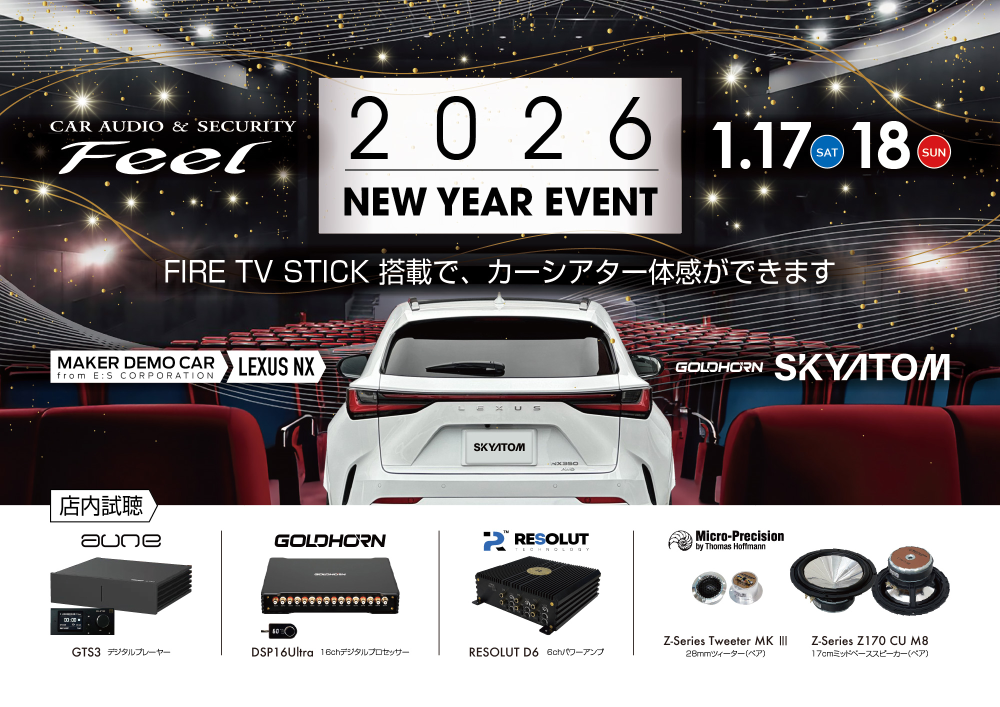 2026年初めのイベントはFeelNEWYEAREVENT カーオーディオメーカー様のご協力で1月17日18日の2デイズ開催! 場所はFeel 開催時間は 両日ともAM10時からPM18時